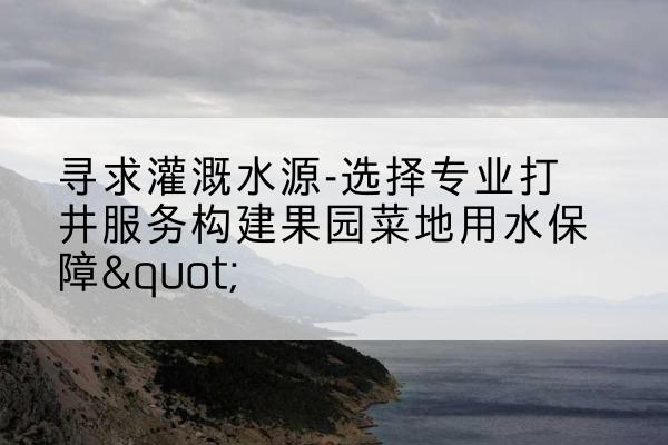总之,寻找专业的打井服务对于果园菜地的灌溉至关重要。通过合理规划、咨询和合同签订,可以确保你的果园菜地拥有稳定、可靠的水源供应。