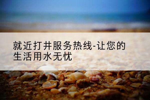 打民用水井,是很多家庭都会遇到的问题,尤其是在城市周边地区。因为城市用水紧张,很多家庭都选择打一口井来满足日常用水需求。但是,如何找到一家可靠的打井公司呢?本文将为您介绍同城附近打井的联系电话以及一些注意事项。