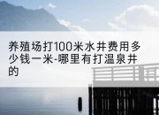 水井深度的确定主要取决于开采层的水文地质条件、含水层的岩性、裂隙发育情况、水化学类型、矿井的涌水量和抽水设备的能力等。大多数打出深井后只抽水不产水的情况,都需要请地质队协助查勘。在养殖场建设过程中,水井是一个必不可少的部分。但是,打水井需要专业的水资源地质人员进行勘探、设计和施工,所以费用相对较高。另一方面,养殖场的水井深度要求不低,一般要求在100米以上,所以打100米水井的费用相对较高。具体费