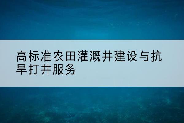 高标准农田建设是现代农业发展的基石,而灌溉井作为其中的重要组成部分,直接关系到农田的灌溉效率和作物的产量。高标准农田灌溉井不仅要求水质优良,还需具备稳定的出水量和高效的灌溉系统。为此,选择专业的打井施工队显得尤为重要。