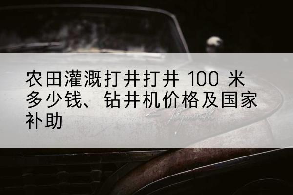 总之,农田灌溉打井对于保障农作物生长具有重要意义。在选择打井 100 米价格、钻井机价格以及申请国家补助时,请关注以上几个方面,以确保项目的顺利进行。
