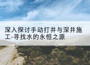 在人类对水资源的探索与利用中,“手动打井及打深井施工”一直是人们获取地下水源的重要手段。从古至今,通过这一传统技术,人类不仅解决了自然环境的限制,还满足了生活及农业灌溉的需要。这一古老而仍然活跃的行业,不仅仅是一个技术挑战,更是对耐心、技巧与创造力的考验。手动打井,是一种古老且简朴的技术。它依赖于人力和简单的工具,如手钻、铁锤、绳索等。操作人员需要具备对土壤性质的了解,以及对机械和远动协作的精准把