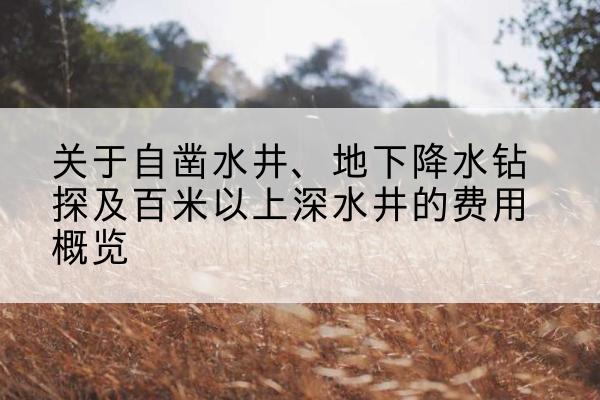 永川区关于自凿水井、地下降水钻探及百米以上深水井的费用概览