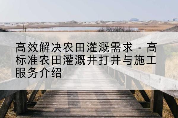 随着农业生产的持续发展,高标准农田建设已成为现代农业发展的关键环节。在这一进程中,高效的农田灌溉系统不可或缺,而高质量的灌溉井和专业的施工队伍是确保水资源合理分配及利用的基础。本文将简要介绍关于高标准农田灌溉井打井与施工服务的相关信息和联系方式。