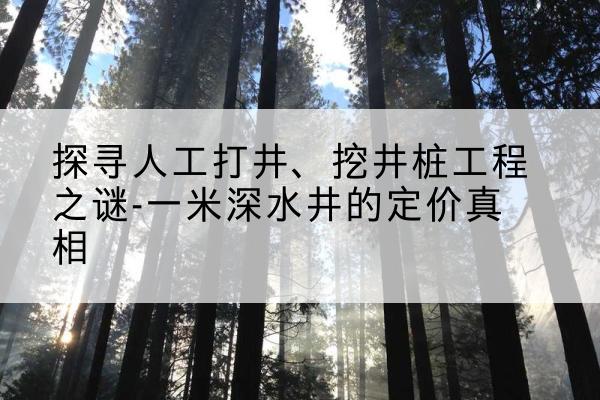 在广袤的大地之下,隐藏着宝贵的水资源,而人工打井、挖井桩工程则是探索这些水源的重要手段之一。无论是家庭自用还是农田灌溉,一口井往往承载着人们对生活安稳和农业发展的深厚期待。随着科技的发展,虽然抽水井已成为许多地区的*,但人工打井、挖井桩工程以其传统技艺与实用性,依然在某些领域占据一席之地。本文将深入探讨人工打井、挖井桩的核心流程及一米深水井的定价机制。