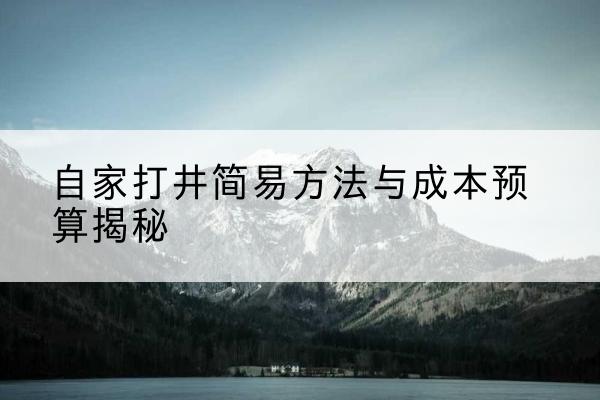 在现代社会,随着对水资源需求的日益增长,越来越多的家庭选择自行打井以满足日常用水需求。手工打井,尽管可能不如专业工程那样高效和精确,但对于自给自足的生活方式来说,它是一种经济且实用的选择。本文将探讨自己打井的简易方法以及150米深度的打井成本预估。