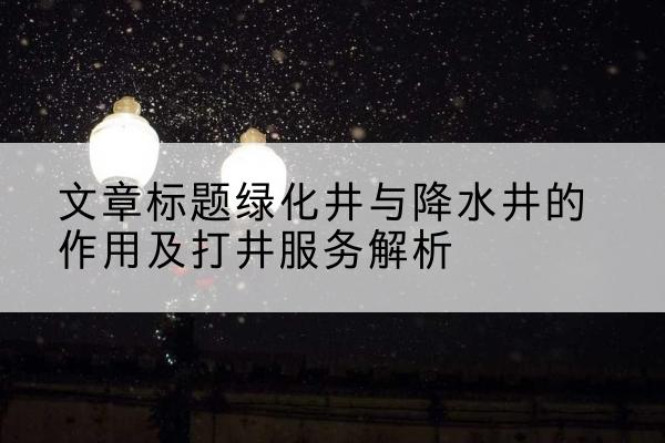 首先,我们来了解一下绿化井。绿化井主要是为了满足园林绿化、农业灌溉等用水需求而建设的井。通过打绿化井,可以有效地解决水资源短缺问题,为绿化植物提供稳定的水分供应,保证绿化植物的健康生长。此外,绿化井还可以用于农业灌溉,提高农业用水效率,增加农作物产量。