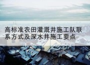 高标准农田建设是现代农业发展的基础,而灌溉井施工则是其中的关键环节。为确保农田灌溉系统的稳定运行,选择专业的施工队伍至关重要。本文将提供高标准农田灌溉井施工队的联系方式,并详细介绍深水井施工的要点。首先,关于高标准农田灌溉井施工队的联系方式,可以通过以下几种途径获取:一是通过当地农业部门或水利局进行咨询,他们通常掌握区域内专业施工队伍的信息;二是通过行业协会或相关展会了解,这些平台汇集了众多施工企