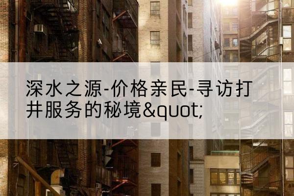 经过一番搜寻,我们为你推荐一家名为“深水之源”的打井公司。他们不仅拥有丰富的经验和专业技术,还能提供优质的服务和合理的价格。与他们合作,你将能够轻松地找到地下水源,解决降水问题,甚至获得一口可供生活或农业用途的井。最重要的是,“深水之源”的价格亲民,不会让你在选择服务时感到压力。