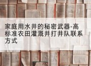 在现代农业中,农田灌溉是保证农作物健康生长的重要环节。而打井则是农田灌溉的关键一环,特别是在缺水地区,井水的重要性不言而喻。近日,一家专业的高标准农田灌溉井打井队在市场上备受欢迎,许多家庭也纷纷询问是否可以打家庭用水井。本文将围绕高标准农田灌溉井打井队的相关信息,探讨家庭用水井的打法。一、高标准农田灌溉井打井队联系方式如果您在寻找专业的农田灌溉井打井服务,那么您一定不能错过这家打井队伍。他们拥有丰