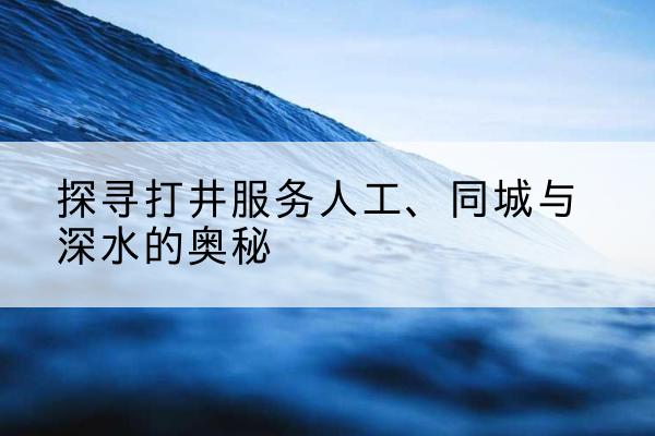 无论是人工打井、同城附近打井还是深水打井,都需要专业的团队和严格的操作规范。他们不仅要保证井的质量和出水量,还要遵循环保和安全的要求。