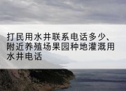 在当今社会,水资源对于人类生活和农业生产的重要性日益凸显。为了满足人们的日常用水需求以及周边养殖场、果园等农业灌溉用水需求,打水井成为了当务之急。那么,如何联系专业的水井施工团队呢?本文将为您详细介绍打民用水井及附近养殖场、果园种地灌溉用水井的联系电话,并提供相关建议,以解您的燃眉之急。一、民用水井联系电话民用水井施工团队主要负责为居民家庭提供生活用水。他们在施工过程中会根据地质条件、水源状况等因