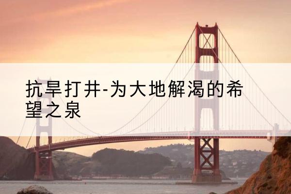 总之,抗旱打井是一项重要的抗旱措施,它可以为大地解渴,为人们的生产生活带来希望。在面对干旱挑战时,我们应该积极采取行动,加大抗旱打井的力度,为实现可持续发展做出贡献。