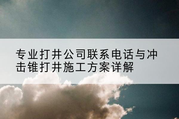 在现代社会中,水源问题已经成为影响人类生活的重要因素之一。对于农村地区和一些缺水城市来说,寻找优质的地下水资源显得尤为重要。因此,打井公司应运而生。今天,我们将为大家提供一家专业的打井公司联系电话,并对他们的冲击锥打井施工方案进行详细介绍。