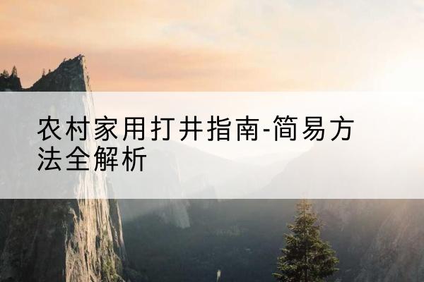 在农村地区,拥有一口自家的井可以为生活带来诸多便利。无论是用于灌溉农田还是满足家庭日常用水需求,打井都是一个实用的选择。下面就为大家介绍一些农村家用打井的简易方法。