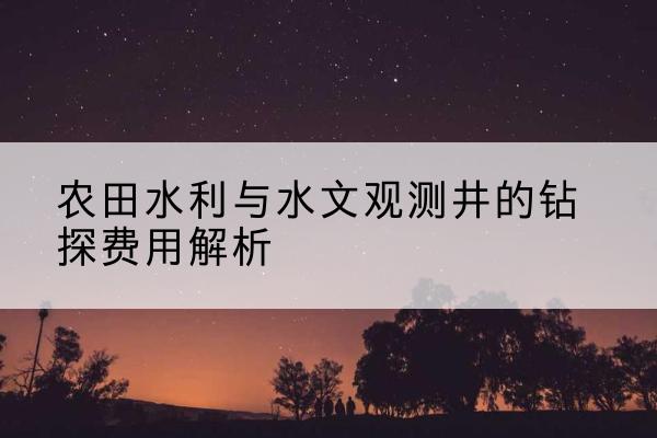 随着农业现代化进程的不断推进,对于农田水利建设和水文环境的监测与管理提出了更高的要求。为了更准确地掌握农田的水情变化,提高灌溉效率和水资源利用率,许多地区开始着手建设农田水利水文观测井。然而,在进行此类项目时,大小钻探工程的费用始终是关注的焦点之一。本文将围绕这一话题展开探讨,以期帮助相关人士更好地了解钻探费用的计算和影响因素。