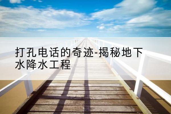 在现代城市建设与工业发展中,地下水降水工程已成为不可或缺的一部分。然而,这一看似简单的工程背后,却蕴藏着无数的技术难题和挑战。近日,一项名为“地下水降水打孔电话”的新技术,成功地解决了这一难题,引领着地下水降水工程的新潮流。