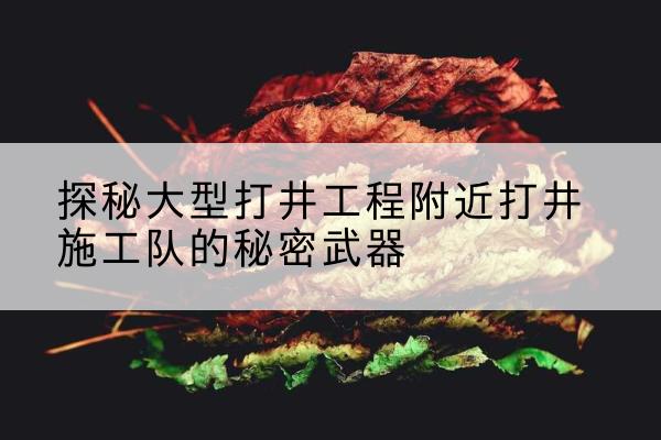 最后,让我们再次强调一下附近打井施工队的重要性。他们是大型打井工程的秘密武器,也是我们生活中的重要伙伴。他们的专业技能、服务态度和责任心将直接影响着我们的打井效果和工程满意度。因此,让我们携手共同打造一个安全、高效、优质的打井工程环境。