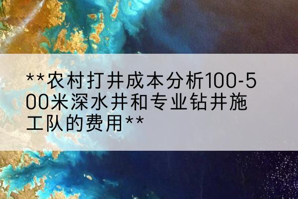 根据以上费用构成,我们可以对农村打井的费用进行一个大致的估算。以100-500米的生活用水井为例,设备租赁和燃料费用可能占据总费用的40%-50%,人工费用大约占30%,材料费用约20%,其他费用则占剩余的10%。总体来看,农村打100-500米深水井的总费用可能在每口井几十万元人民币左右。