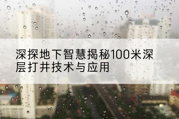 在人类寻求自然资源和解决水源问题的历史长河中,打井技术扮演了至关重要的角色。尤其在当前水资源日益紧张的情况下,打井100米成为了获取深层水源、扩大可利用水资源的重要途径。这项看似简单的工程实则蕴含着深厚的地质学、水文学以及工程技术知识。