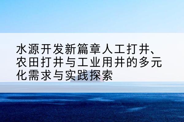 在现代社会的发展进程中,水资源作为生命之源和经济活动的重要支撑,其合理利用与有效开发显得尤为重要。其中,人工打井、农田打井以及工业用井三种类型的井,在各自领域中扮演着不可或缺的角色。