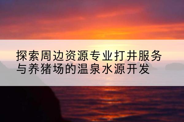 总结来说,附近的专业打井服务为养猪场和温泉开发提供了有力保障,而合理利用这些资源,将有助于推动当地农业生产和旅游业的繁荣。在享受便利的同时,我们也应关注资源的保护,实现经济效益与环境保护的双赢。