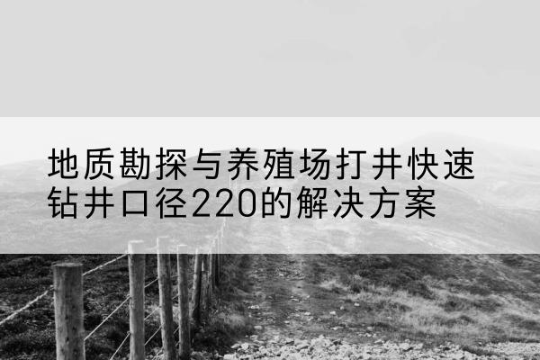 总之,地质勘探和养殖场打井都是非常重要的工程。选择合适的钻井公司和技术,可以确保钻井工作的顺利进行,并提高钻井成功率。快速钻井口径220的解决方案,可以满足养殖场的用水需求,同时提高钻井工作的效率和质量。希望这篇文章能够对您有所帮助。