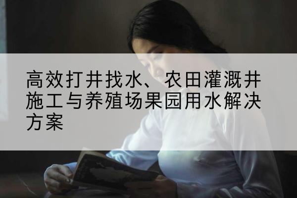 高效打井找水、农田灌溉井施工与养殖场果园用水解决方案