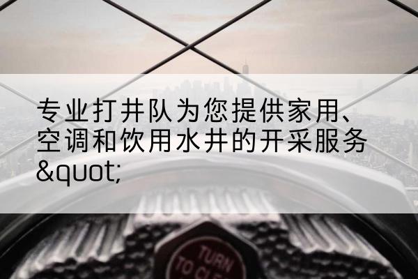 在这个日益繁荣的市场环境下,专业的打井队是为您提供家用井、空调井和饮用水井开采服务的最佳选择。他们凭借丰富的经验、先进的技术和优质的服务,赢得了广大客户的信任。让我们携手专业打井队,共创美好未来!