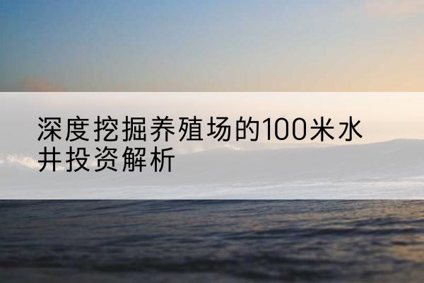 在现代社会中,养殖业的发展越来越受到重视。为了保持养殖动物的健康成长和生产效率,水资源的需求日益增加。因此,许多养殖场都会考虑在水源充足的地方设立,或者通过人工方式打井来获取水源。在这篇文章中,我们将深入探讨在水源地附近建设养殖场时,打一口100米深的水井的费用及其影响因素。