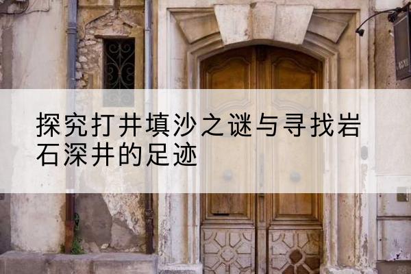探究打井填沙之谜与寻找岩石深井的足迹 - 打井钻井打桩勘探队【官网】-本地附近专业钻井打井队|生活饮用打井|农田灌溉抗旱打井农田灌溉抗旱打井|养殖场钻井|养鱼养猪钻水井|温泉井|地质勘探打井|工程降水井|单位钻深水井|光伏桩打孔|地质勘探打桩|钻井多少钱一米?