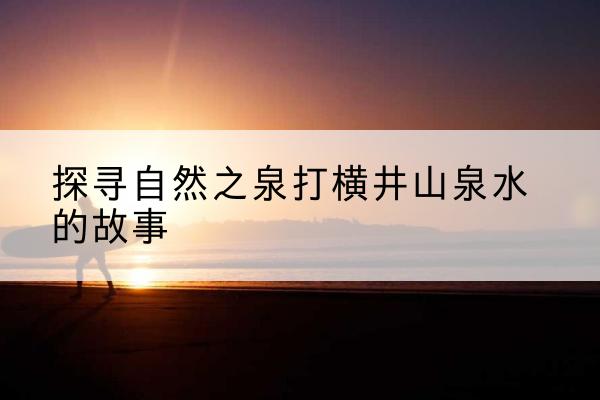 在*的大地上,有着无数涓涓细流和清澈的山泉水,它们滋养着大地,孕育着生命。在这样一个美丽的地方,有一个叫做“打横井”的山泉水品牌,它的故事充满了传奇色彩,也承载着人们对大自然的敬畏和对生命的热爱。