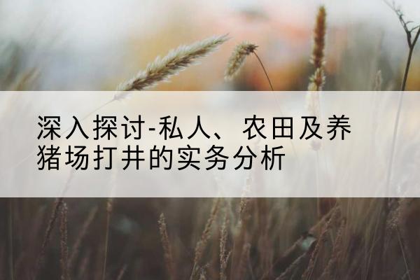 综上所述,私人打井、农田打井和养猪场打井是合理利用地下水资源的重要方式。在实际操作中,应充分考虑地质、水文、环保等多方面因素,确保水资源的合理利用和生态的可持续性。
