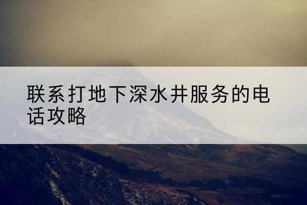 在特定的地区,由于地下水资源丰富或是其他用水需求,我们常常需要打深水井来满足生产或生活的需求。下面我们来聊聊如何正确高效地拨打“打地下100米深水井”服务电话的问题。这不仅能帮助您更快地获取相关信息,也能保证您在面临工程难题时能够得到及时的解决和帮助。